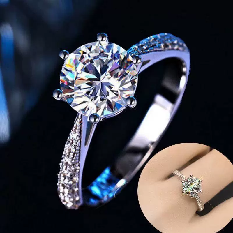 خاتم زفاف للزوجين من الفضة المويسانتي بستة شقوق ذات جودة مضادة