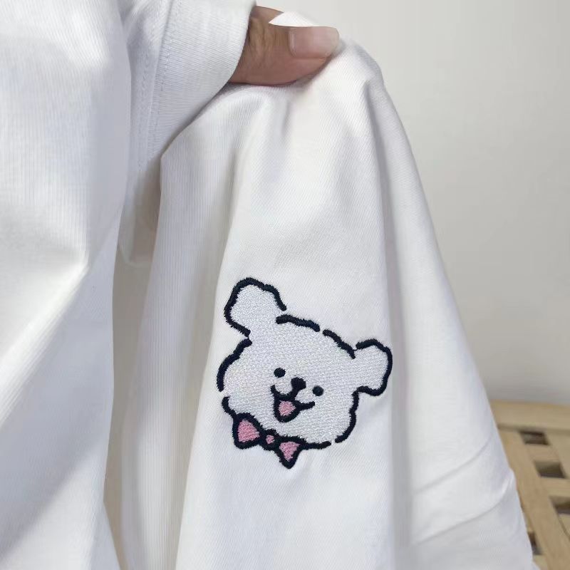Couple Embroidery American White Puppy Pattern 2024 Summer New Cotton Short-sleeved Unisex T-shirt Trendy Brand