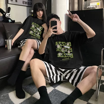 | nameOriginal | Couple female pure cotton cute milk tea plaid summer cartoon |