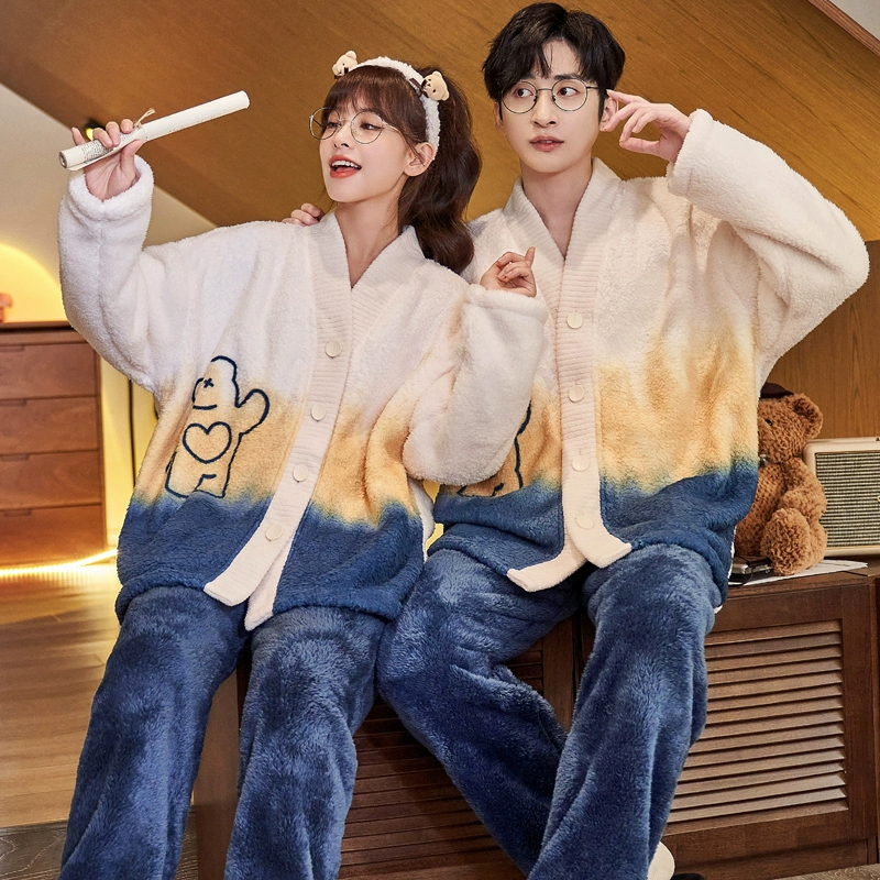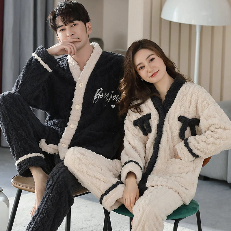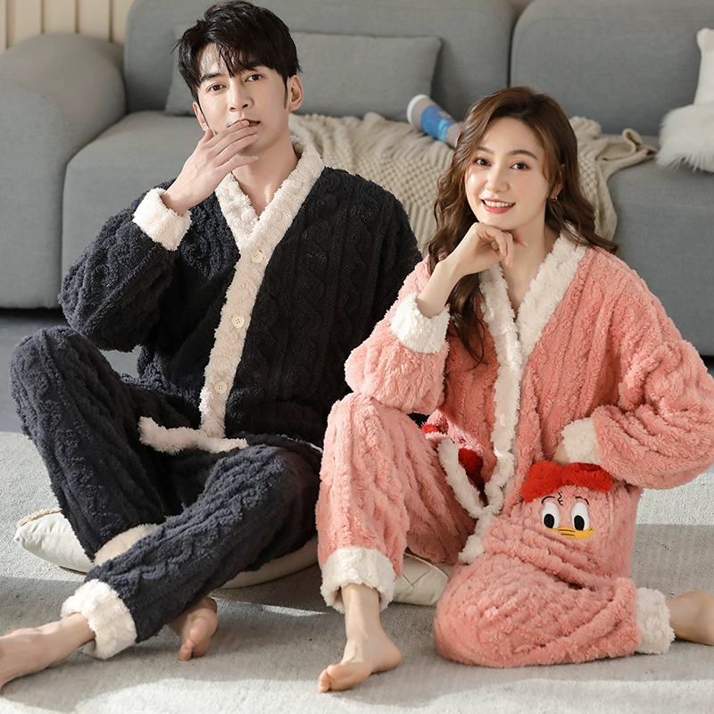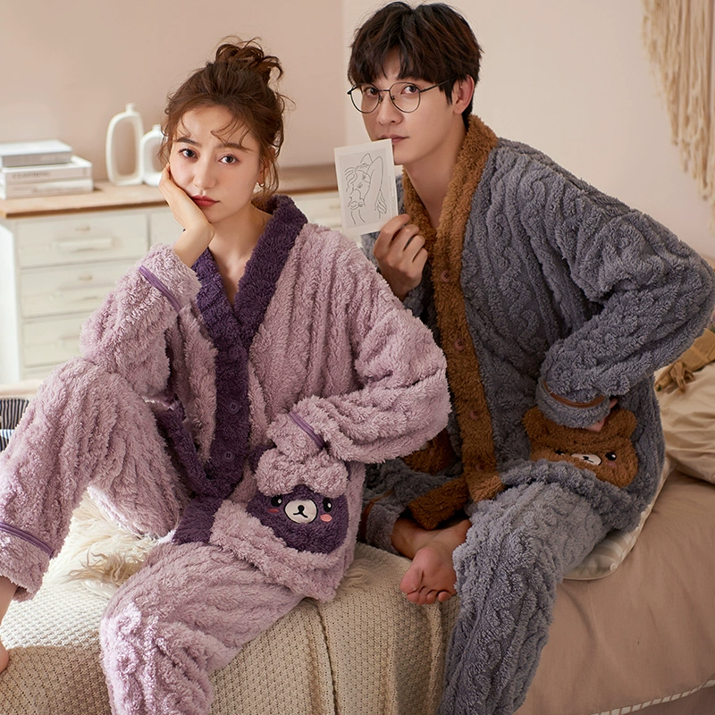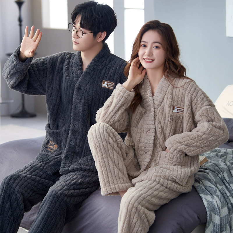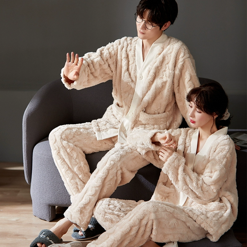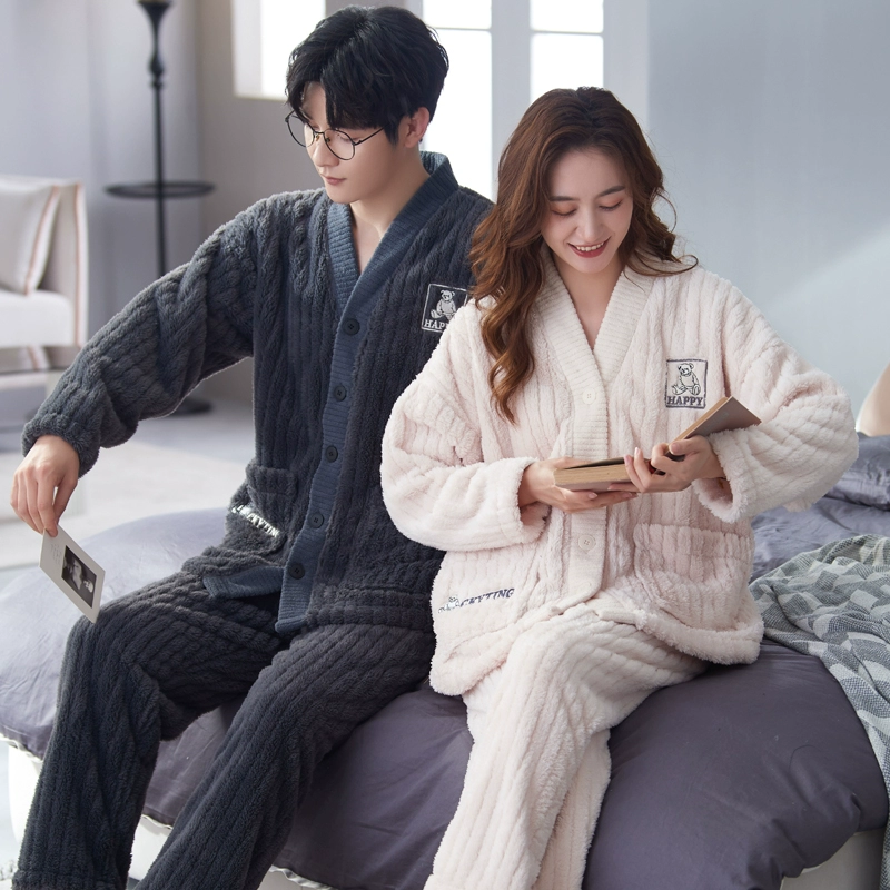 | nameOriginal | Couple pajamas coral velvet autumn and winter cardigan women's men's suit flannel plus velvet thickened kimono home clothes |