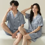 | nameOriginal | Couple pajamas short-sleeved ice silk 2024 new summer high-end ice silk men's and women's summer thin two-piece set |