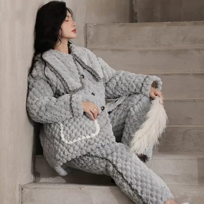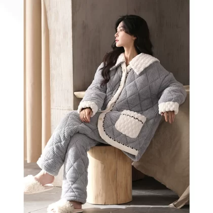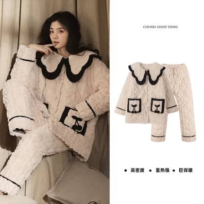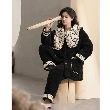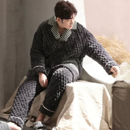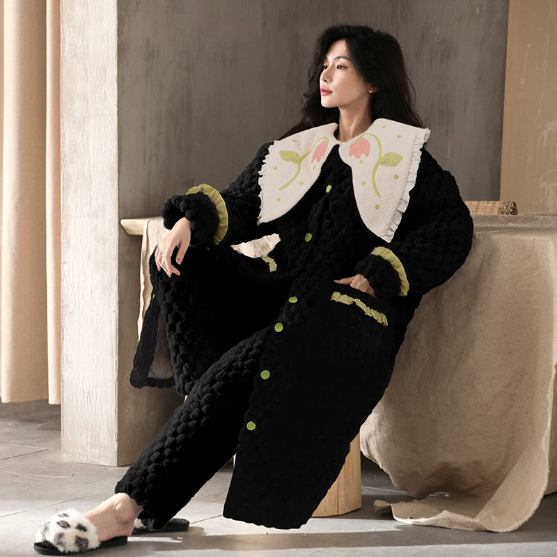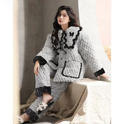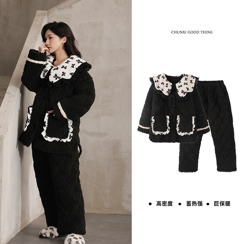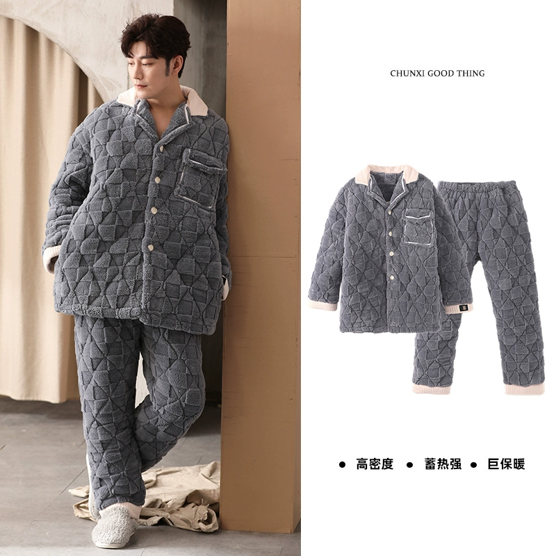 | nameOriginal | Couple pajamas three-layer thickened quilted winter coral velvet plus velvet butterfly print contrasting color extra thick home wear for men |