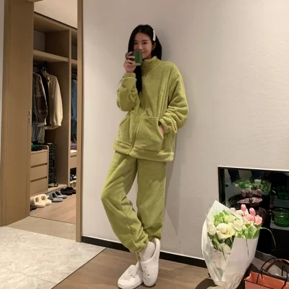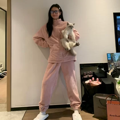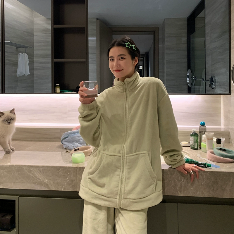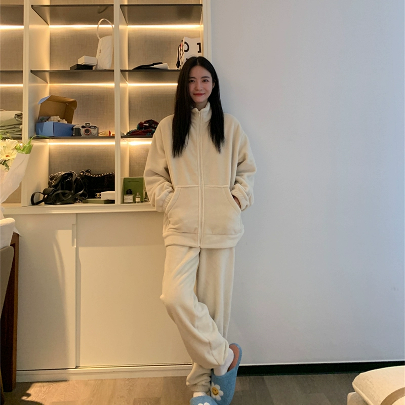 | nameOriginal | Couple pajamas women's autumn and winter long-sleeved suit plus velvet Jieyang ins style leg binding can be worn outside coral velvet home clothes |