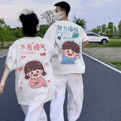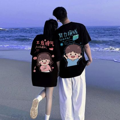 Couple's summer dress is very fairy short sleeve T-shirt is not the same as 2024 new high-end feeling suit net red tide brand clothes
