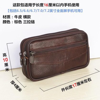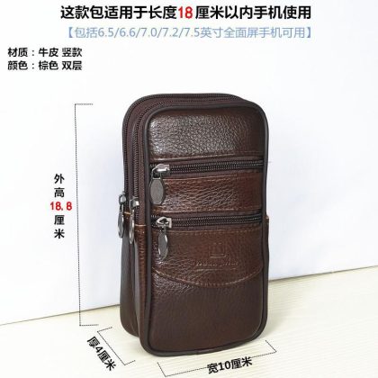 Cowhide Mobile Phone Bag Men's 7.5 Inch 7 Inch Hanging Waist Wallet Wearing Belt Mobile Phone Bag Waist Bag for Elderly Migrant Workers