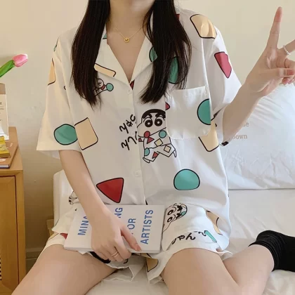 nameOriginal | Crayon Shin-chan striped cotton cardigan for women student cartoon |