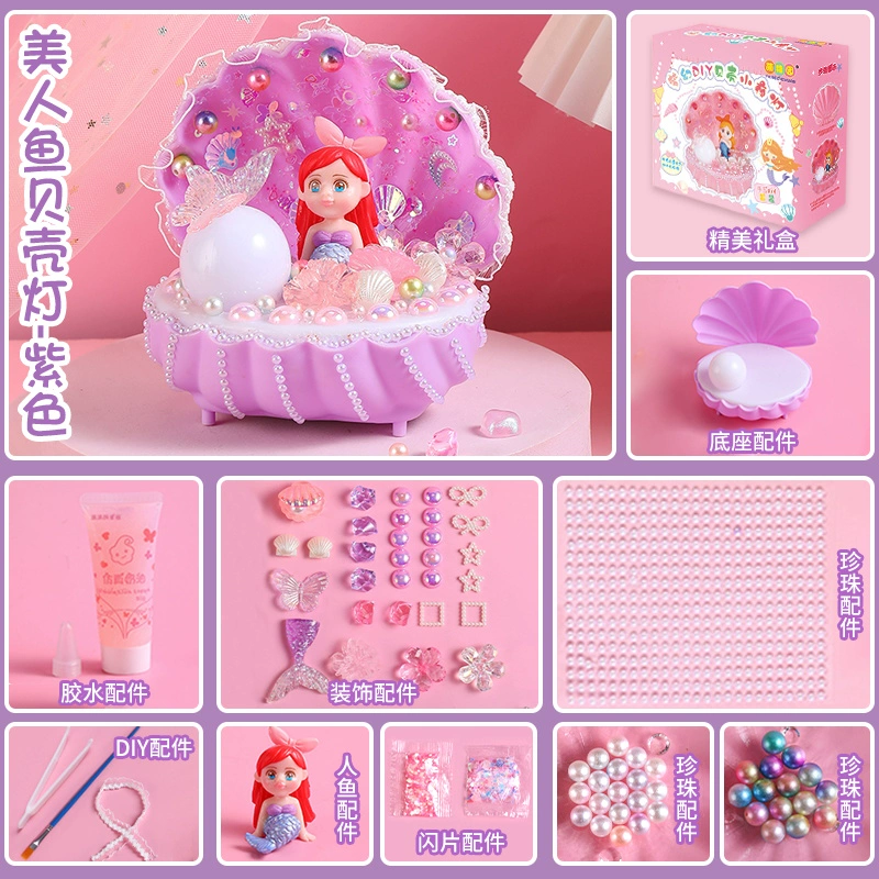 | nameOriginal | Cream glue diy material bag night light mermaid shell girl toy set children's handmade kindergarten |