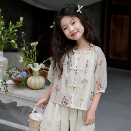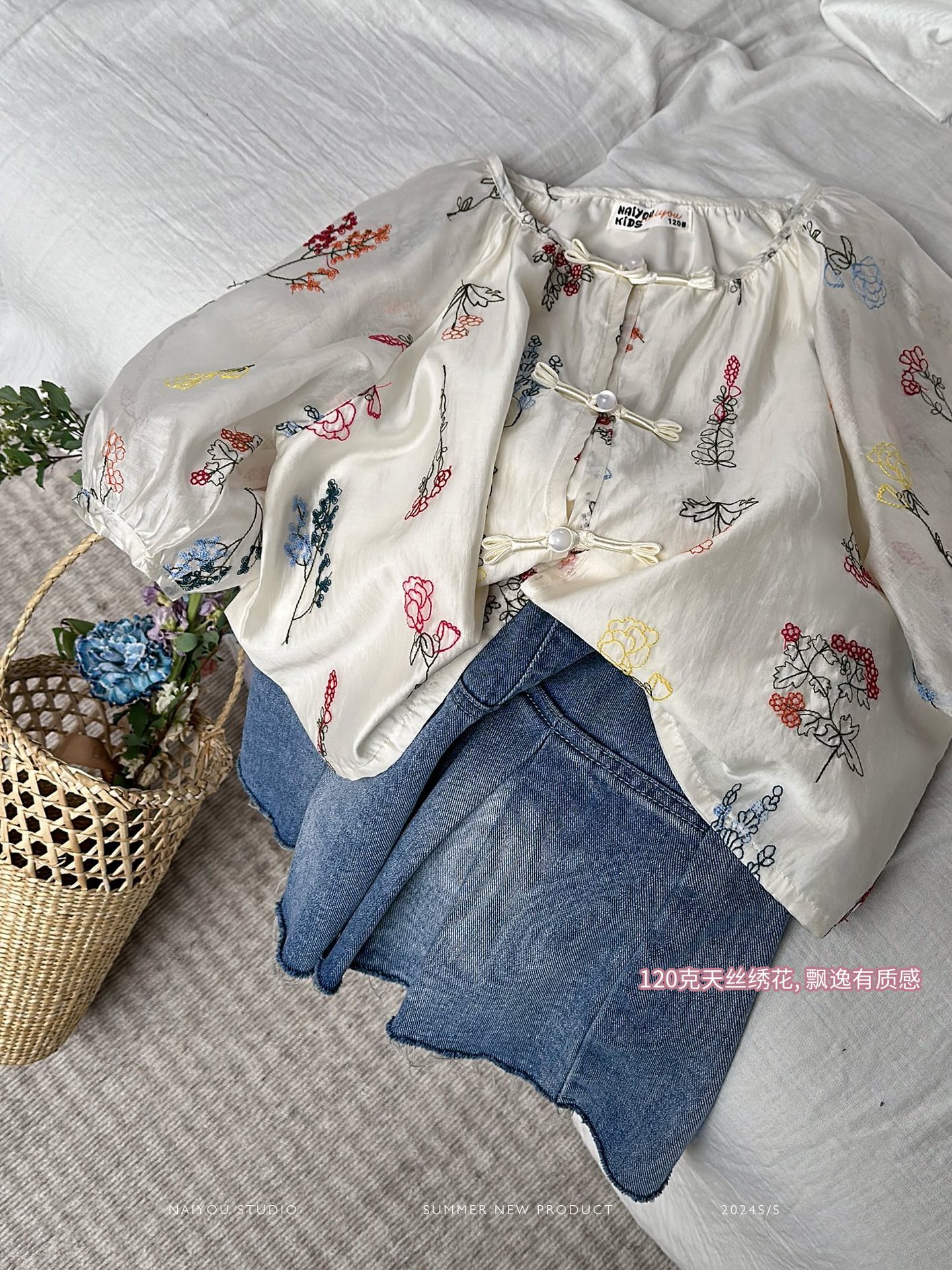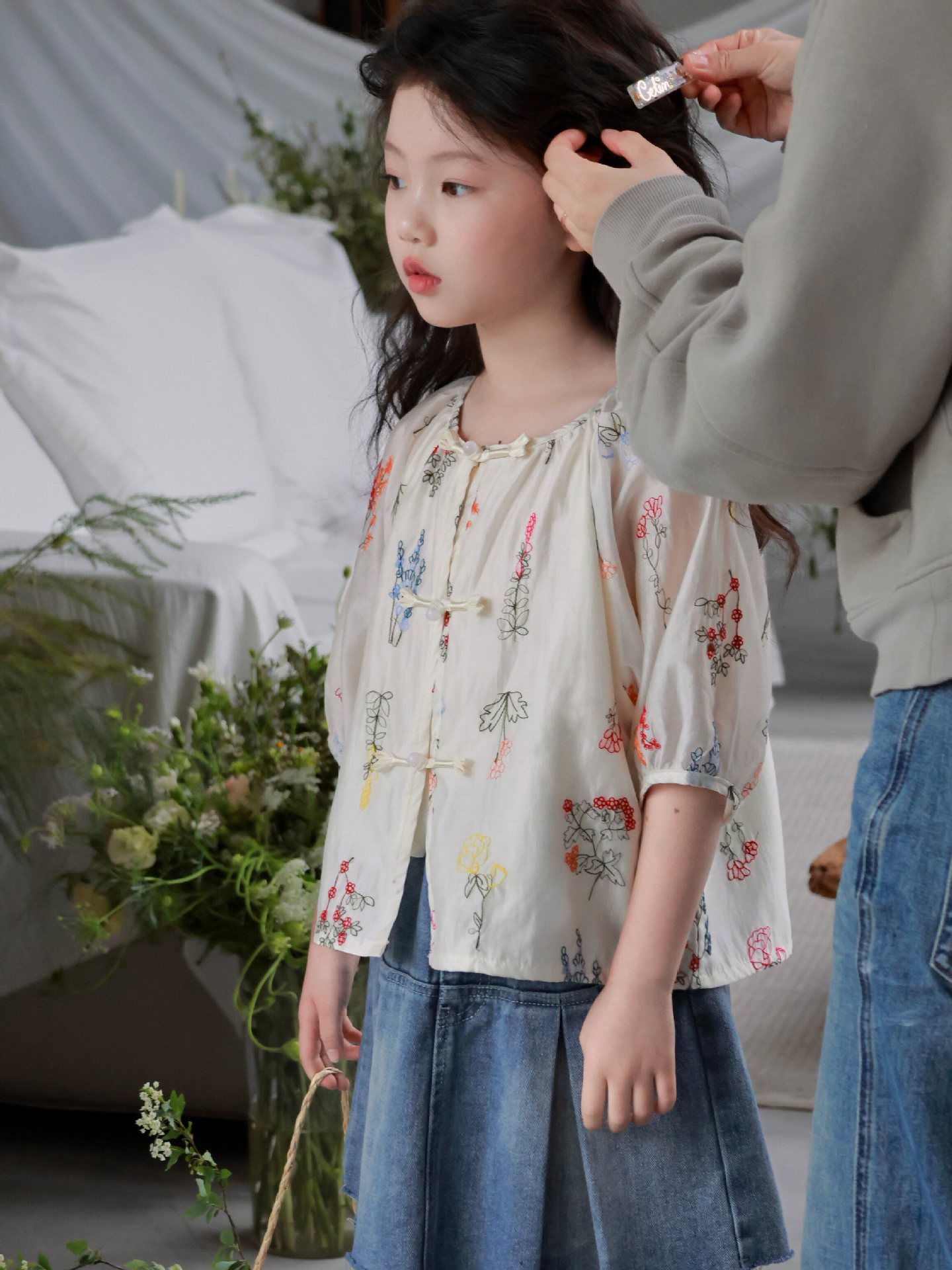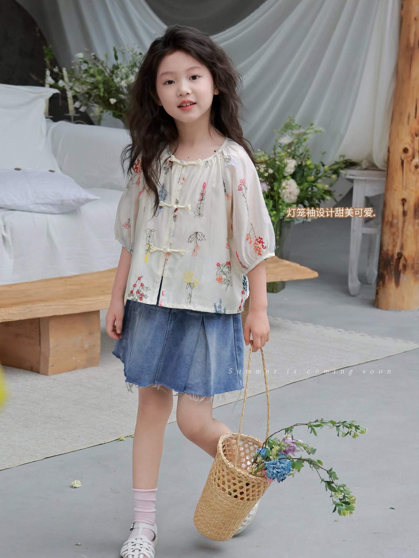 | nameOriginal | Cream kids children's clothing girls 2024 summer new national style shirt western style children's shirt baby embroidered top |