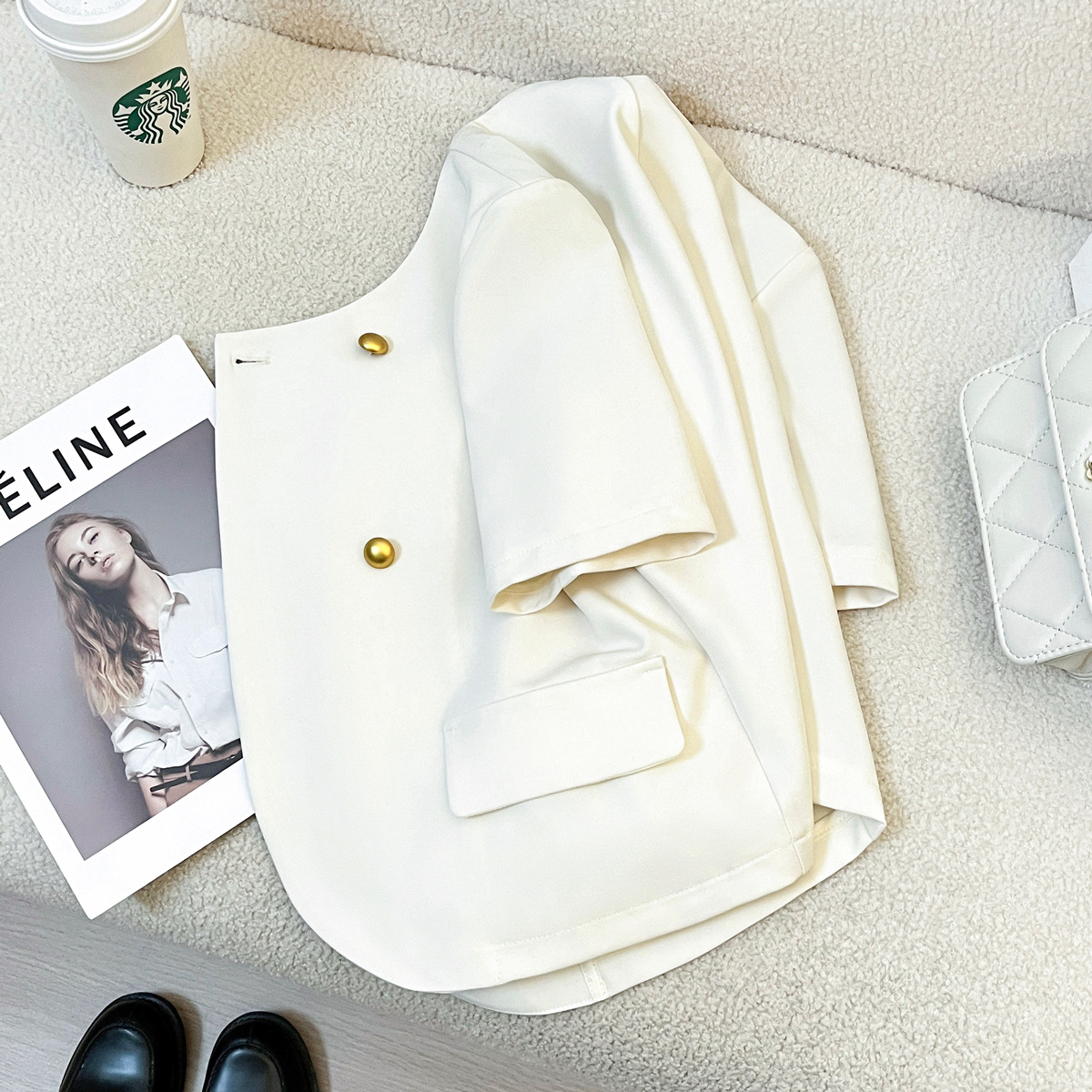 creamy-white Chanel Style Short Suit Jacket Women's Thin 2024 Summer New High-end Elegant Short-sleeved Top