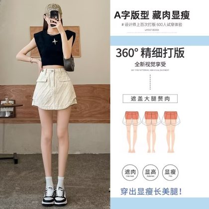 | nameOriginal | creamy-white Denim Skirt Women's 2024 Summer Explosions High Waist A Version Wide Leg Half-length Pear-shaped Body Hip Skirt |