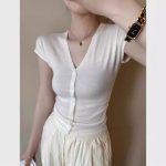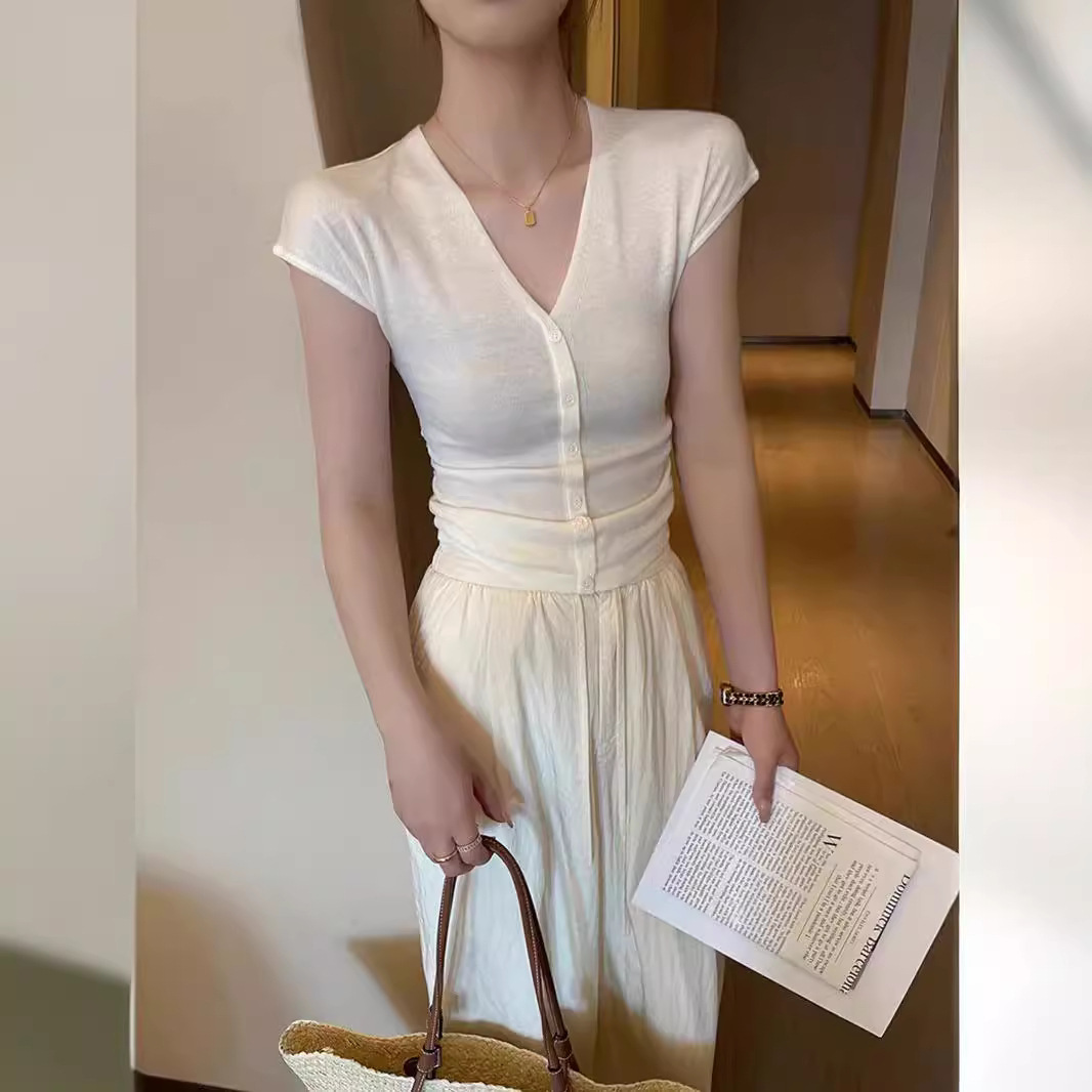 | nameOriginal | creamy-white V-neck Knitted Short-sleeved Cardigan Women's Summer 2024 Summer New Elegant Elegant Slim-fit Tight Waist Top for Women |