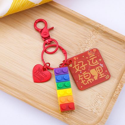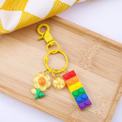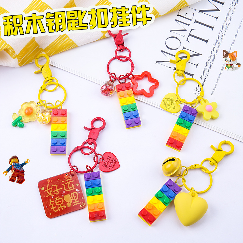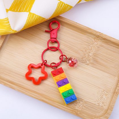 Creative Color Building Blocks Keychain Pendant DIY Personalized Car Key Ring Cute Men and Women Couple School Bag Hanging Ornaments