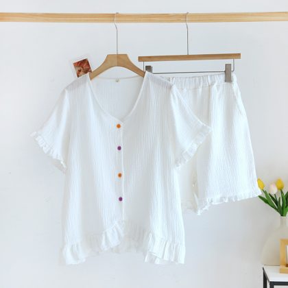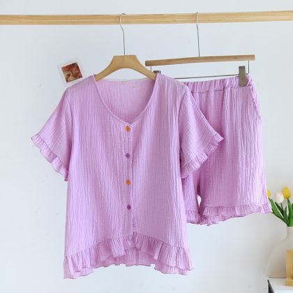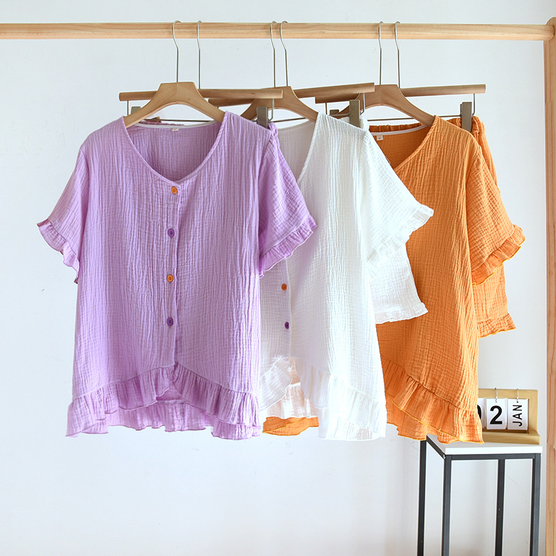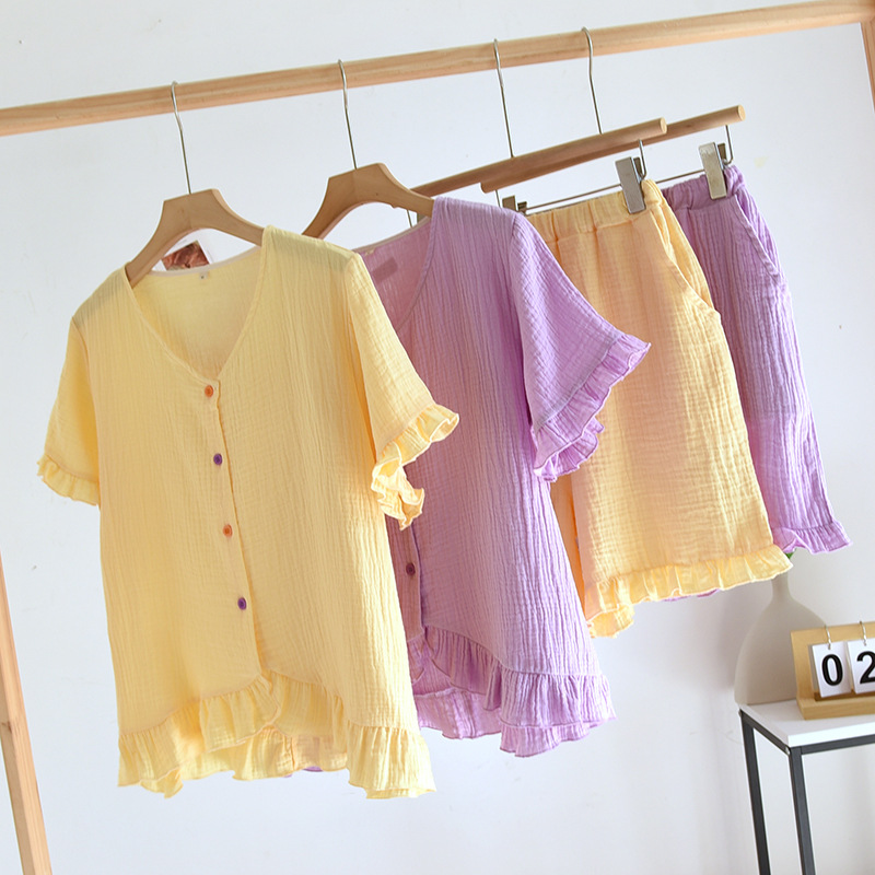 | nameOriginal | Crepe women's new lace short-sleeved shorts multi-color pajamas suit spring and summer V-neck casual loose home wear |