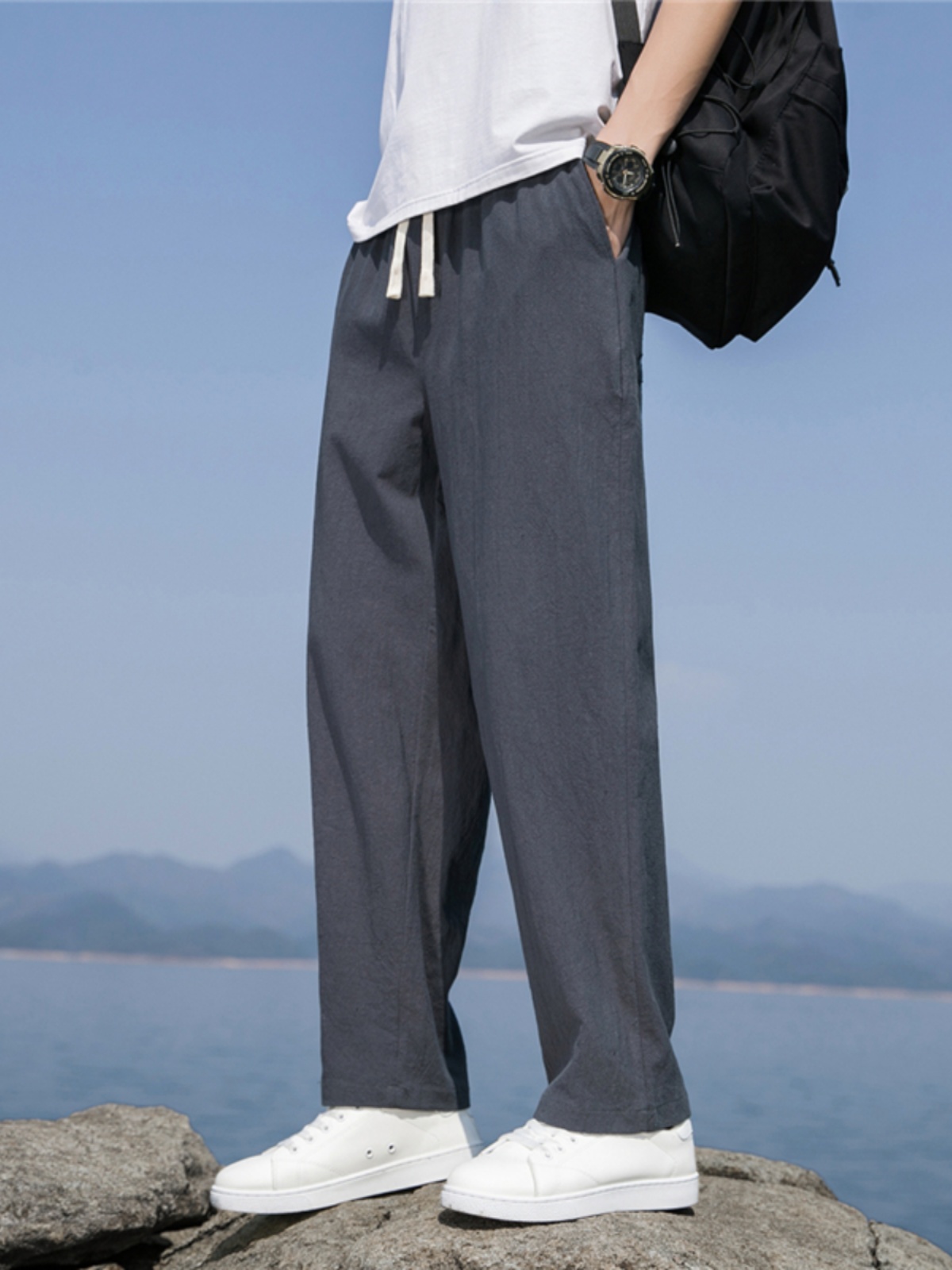Cropped Pants Cotton Men's Thin Loose plus size Straight Spring and Summer New Casual Pants Men's Chinese Style Cotton and Linen Pants