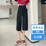 بنطلون قصير من الحرير الجليدي رفيع بخصر عالٍ بدلة غير رسمية مستقيمة