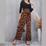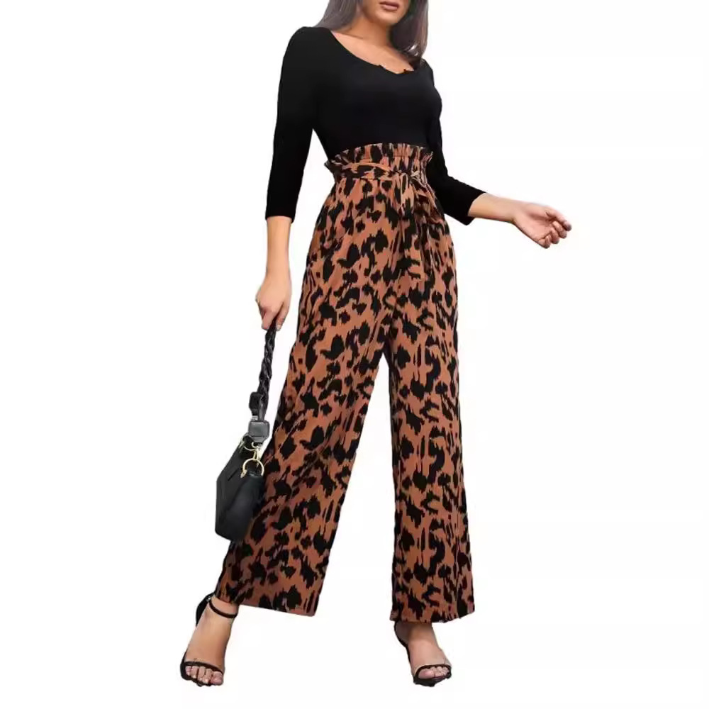 | nameOriginal | Cross-border 2024 spring women's elastic waist needle woven printed jumpsuit women's belt straight casual pants spring women's |