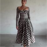 | nameOriginal | Cross-border Amazon 2023 European and American autumn New U-neck Plaid long sleeve slim belt retro dress women |