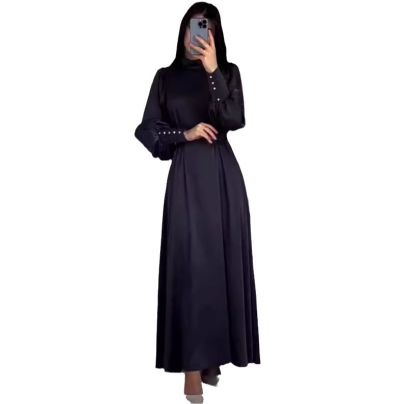 Cross-border Amazon 2024 European and American autumn new girdle solid color long sleeve slim belt retro dress