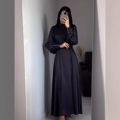 فستان أمازون عبر الحدود 2024 خريفي أوروبي وأمريكي جديد بحزام بلون سادة وأكمام طويلة وحزام نحيف