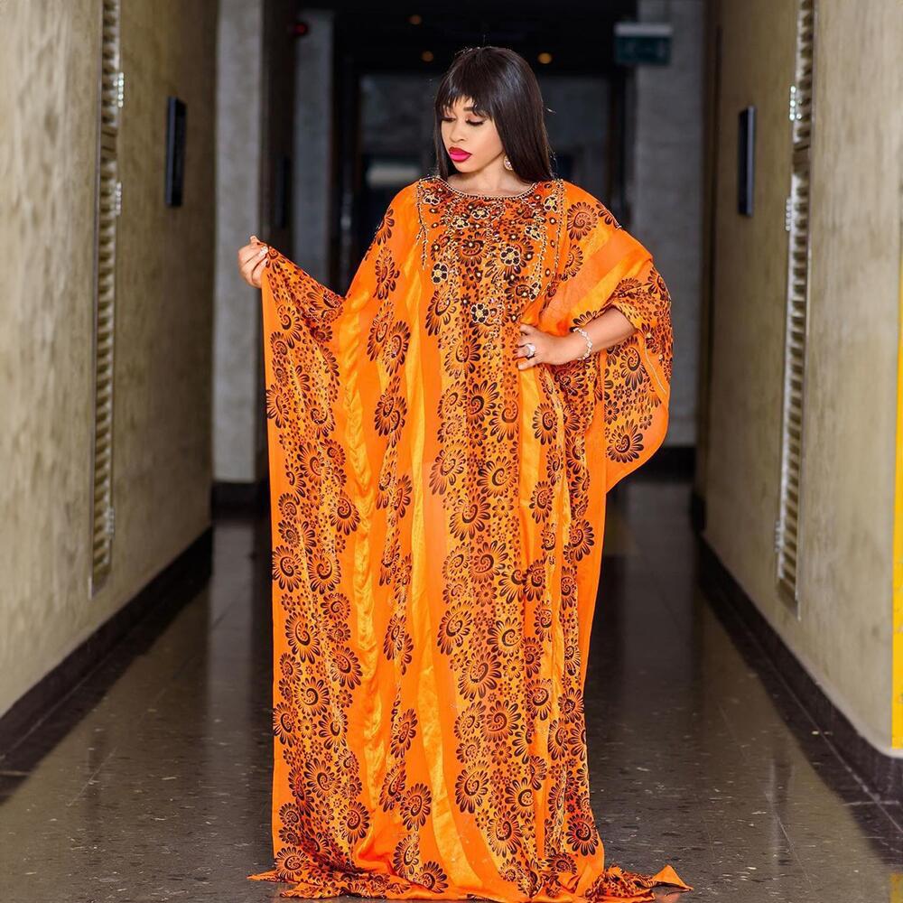 عبر الحدود الأمازون الأفريقية فستان محكم من عند الصدر ويتدلى بشكل كبير الشيفون الحفر الساخن والخرز مدفع مع تنورة داخلية تمتد زي العرقية