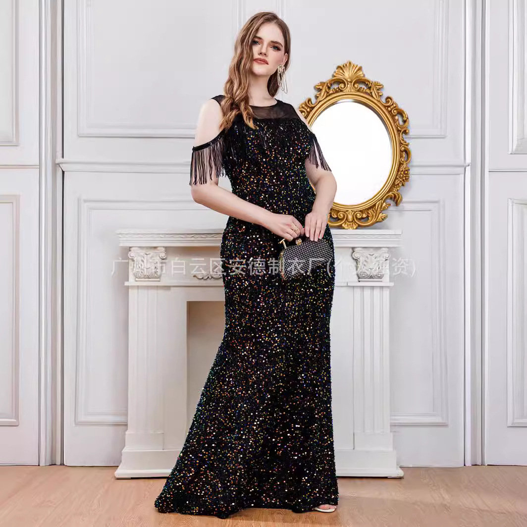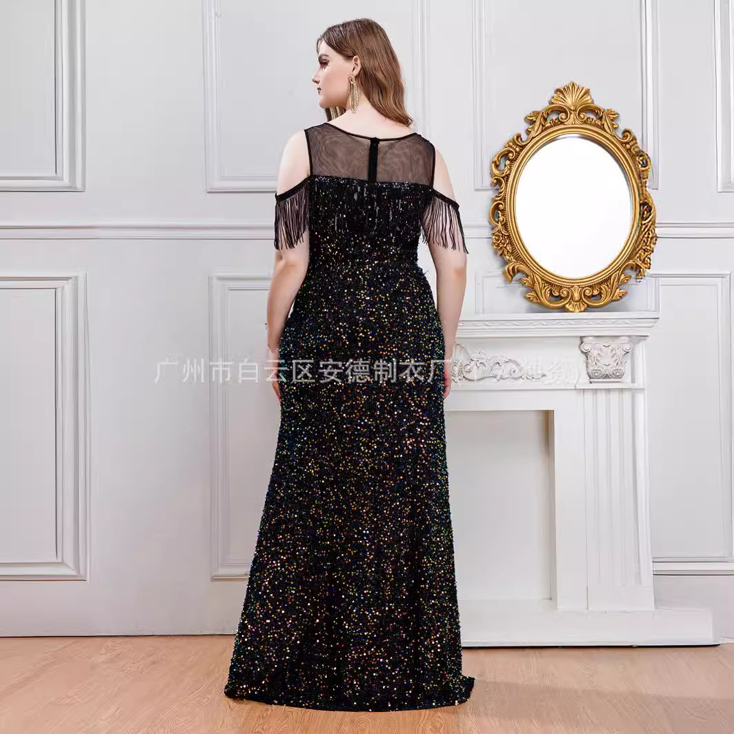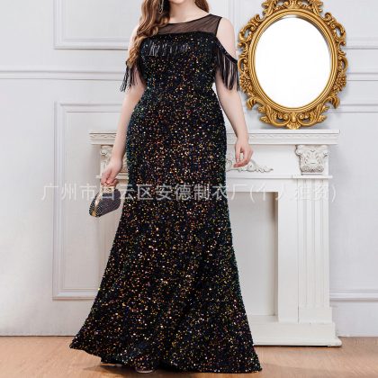 | nameOriginal | Cross-border Amazon Elegant plus size Long Dress European and American Independent Station Sequin Tassel Fishtail Evening Dress Women's Foreign Trade |
