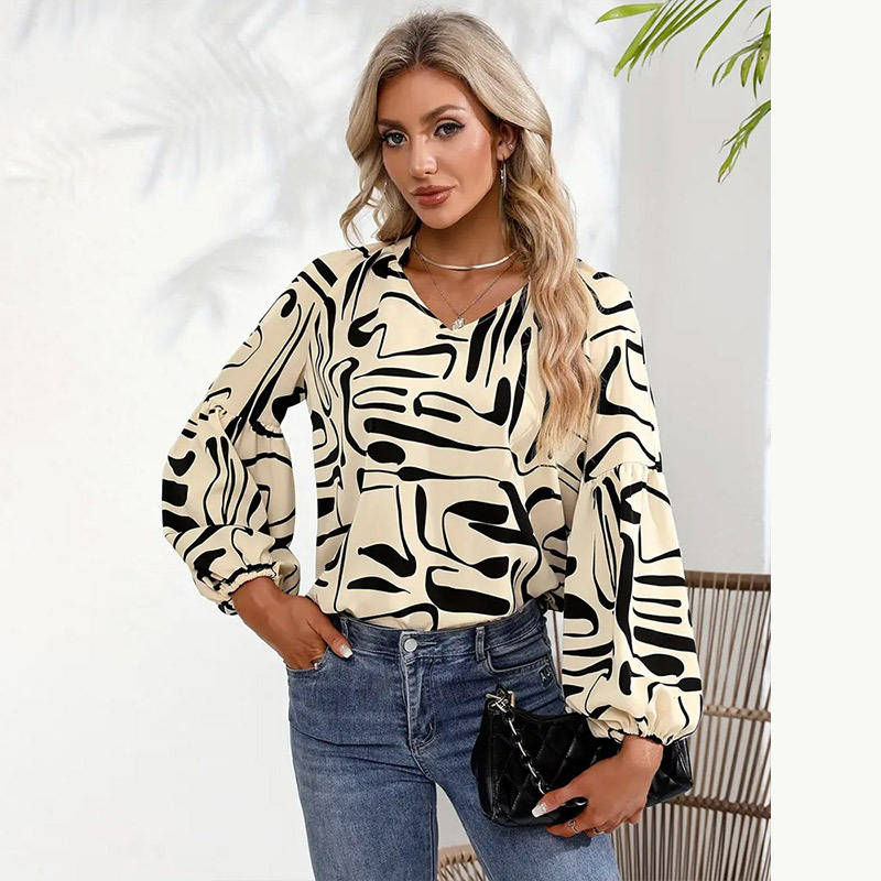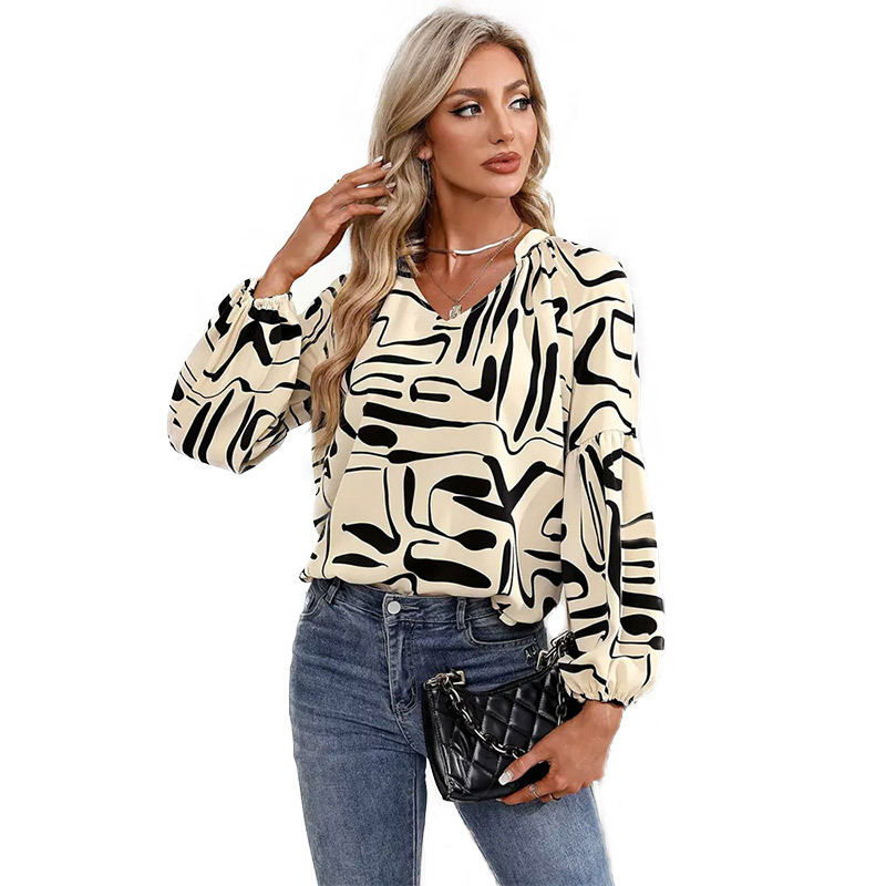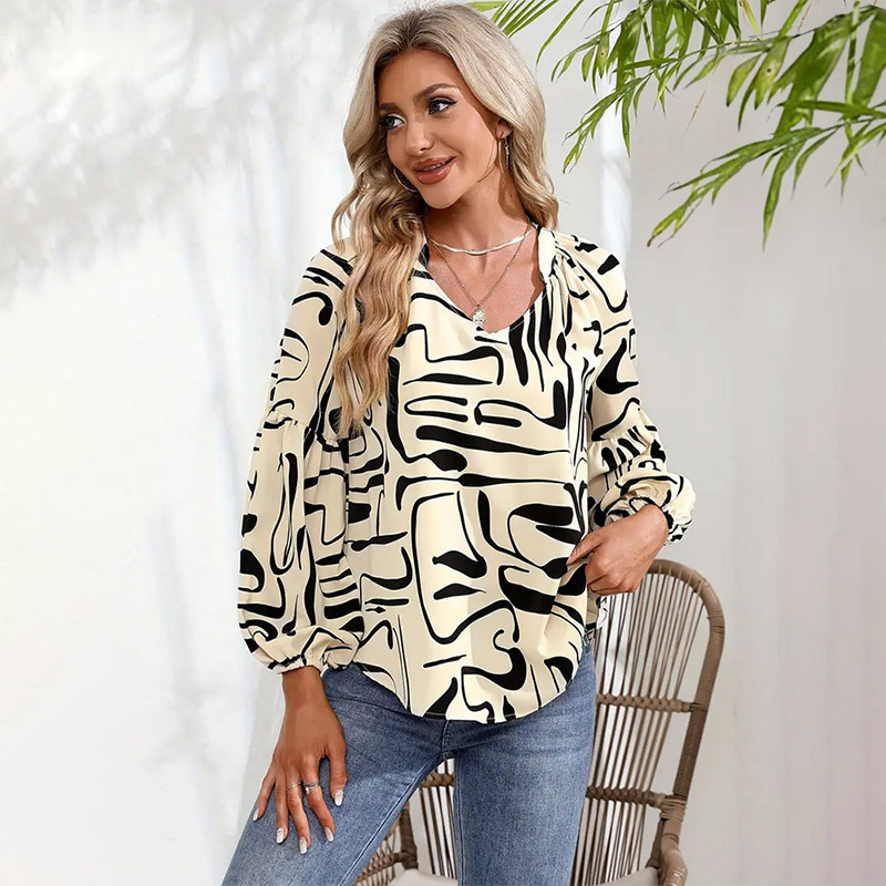 عبر الحدود أمازون جديد 2024 صيف جديد غير منتظم مطبوعة تي شيرت برقبة على شكل v ركاب فضفاض بأكمام طويلة للنساء