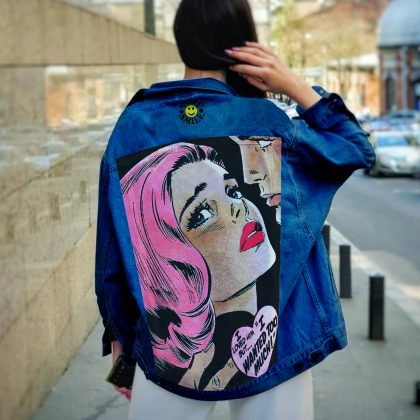 * Cross-border autumn and winter Amazon denim jacket women's long sleeve independent station European and American denim jacket jacket printed 2566