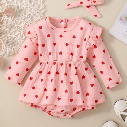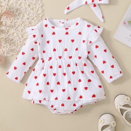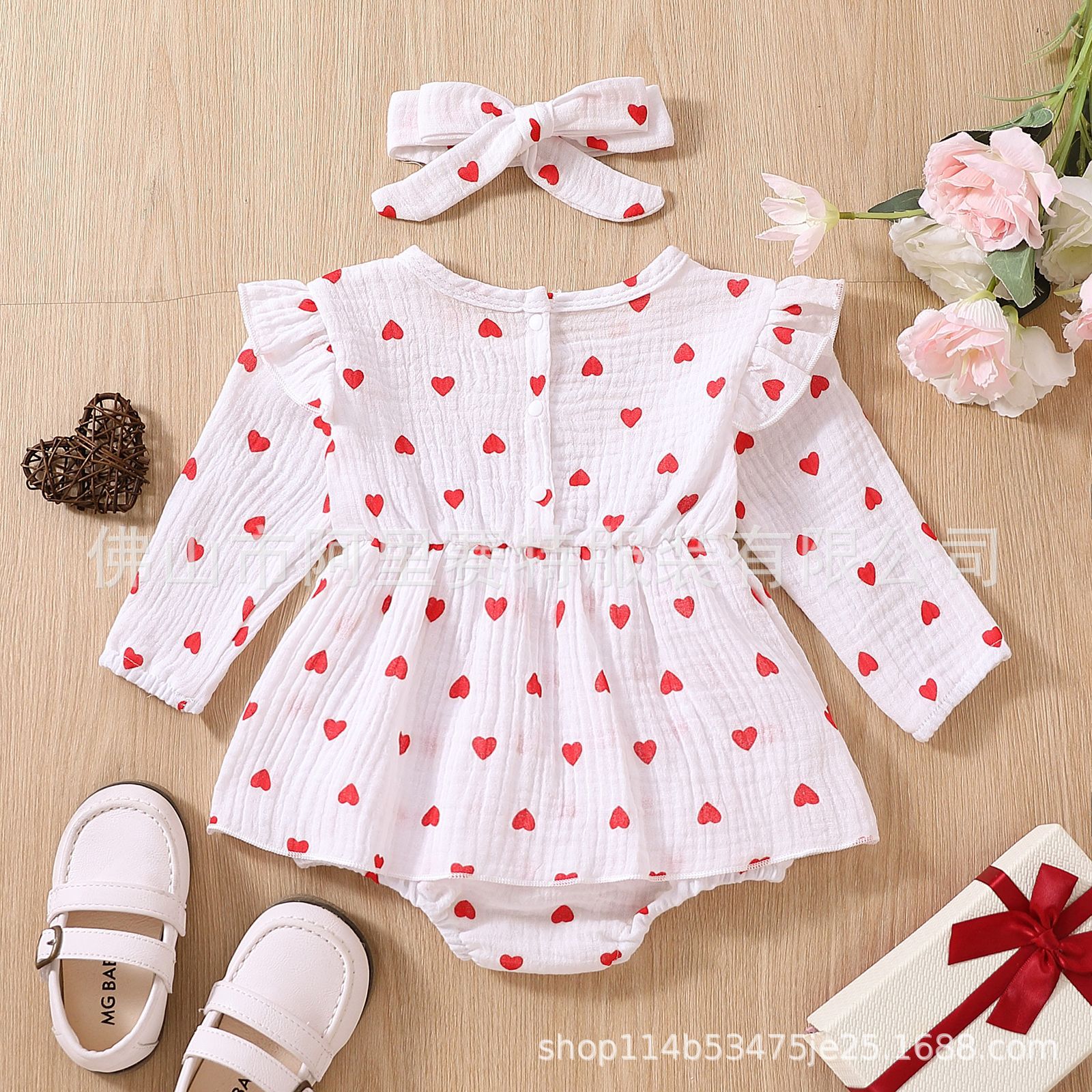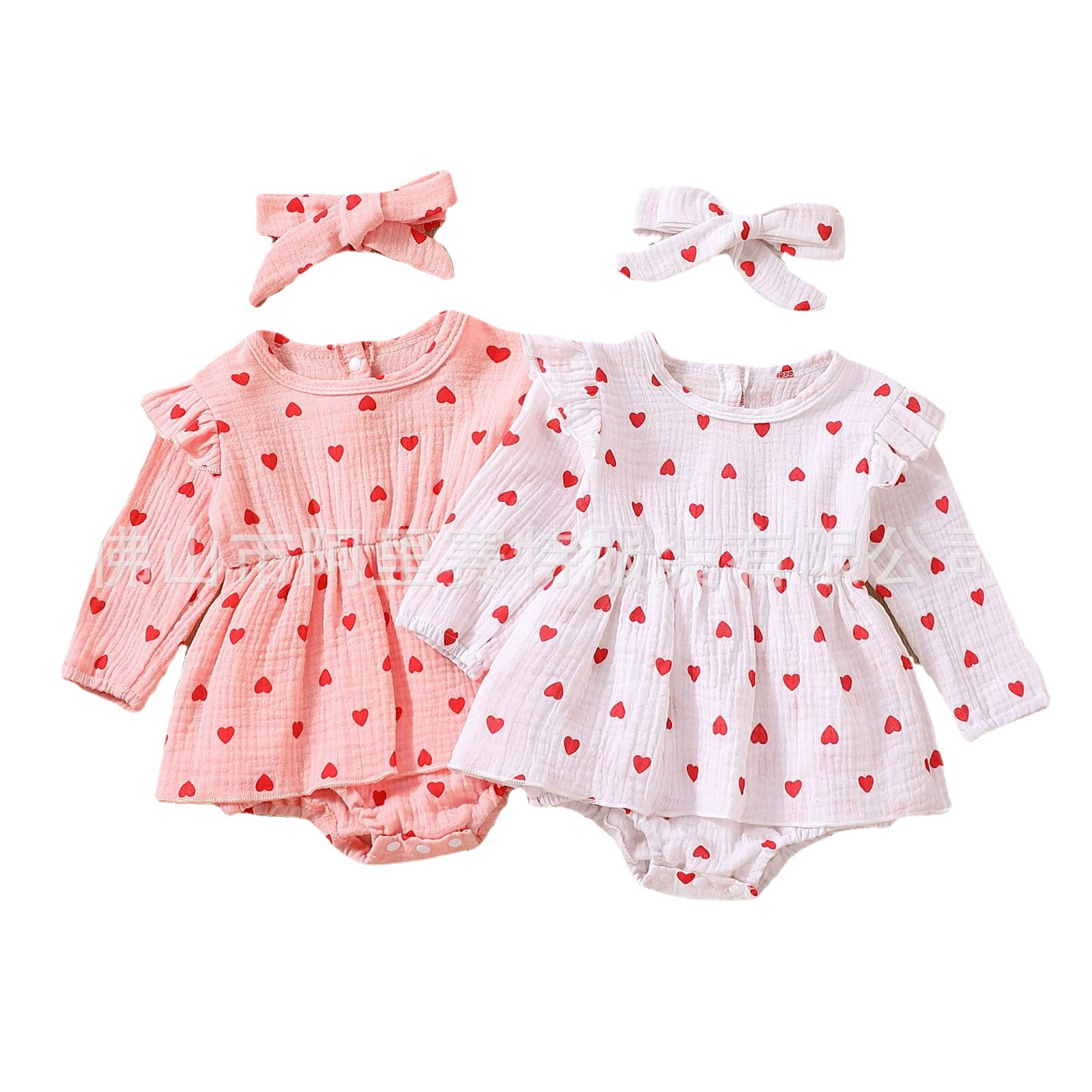 | nameOriginal | Cross-Border baby girl baby pink white Valentine's Day series love triangle skirt + headscarf AL083 |