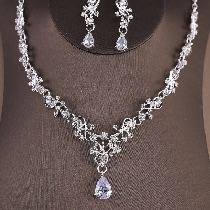 | nameOriginal | Cross-border bridal zircon necklace earrings two-piece women's wedding dress accessories Europe and the United States cross-border foreign trade first jewelry |