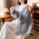 Cross-border Coarse Wool V-neck Sweater Coat Women's New Loose Lazy Style Thickened Knitted Cardigan for Autumn and Winter 2024