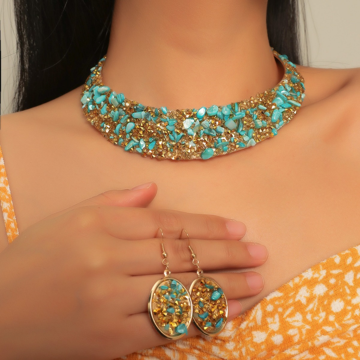 | nameOriginal | Cross-border colorful fashion drop earrings necklace electroplating diamond earrings pendant pendant two-piece jewelry manufacturers wholesale |