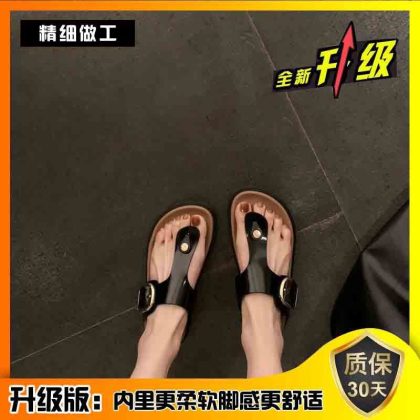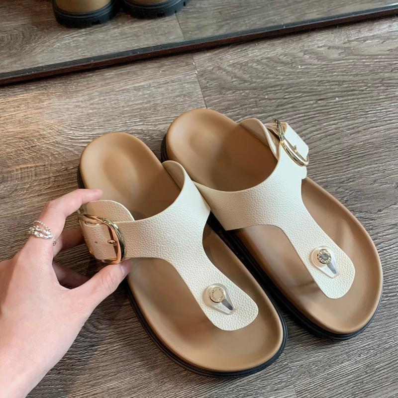 Cross-border Cowhide Version ~ Thick-soled Flip-flops for Women in Summer with Buckle Casual Flip-flops with Birkenstock