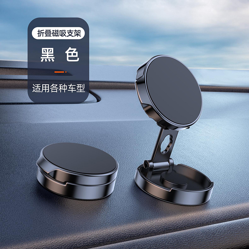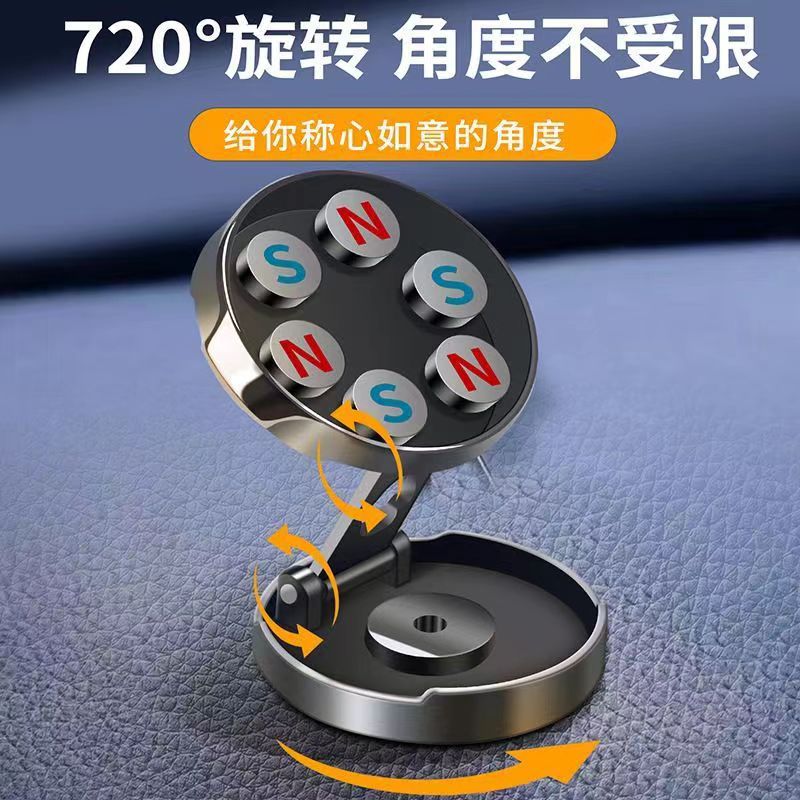 Cross-border creative car magnetic bracket car strong magnetic attraction round 360 folding rotating mobile phone bracket wholesale