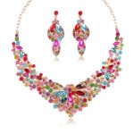 مجوهرات فستان عبر الحدود مبيعات مباشرة أقراط قلادة أوروبية وأمريكية مكونة من قطعتين مجموعة زهور ملونة لحفلات الزفاف الرجعية تصميم راقي
