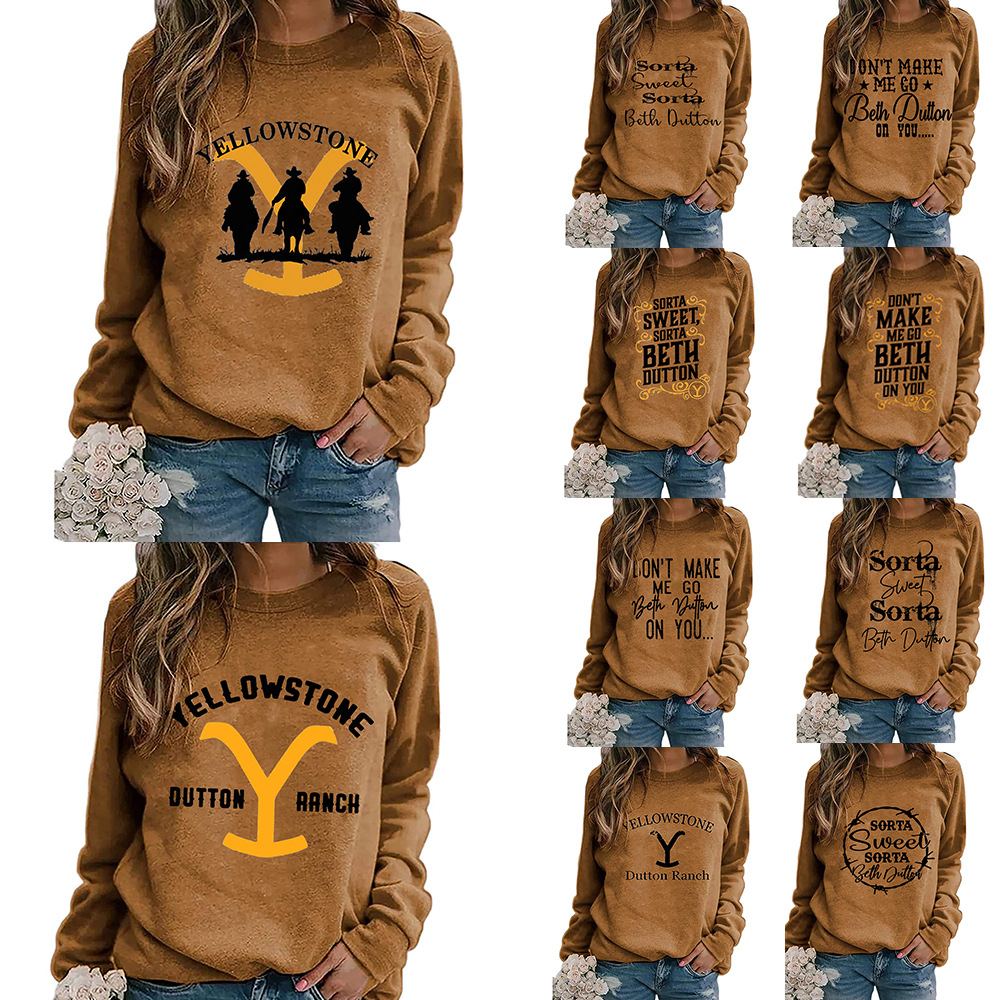 Cross-border e-commerce independent station shopify Amazon new YELLOW STONE cow head printed women's sweater