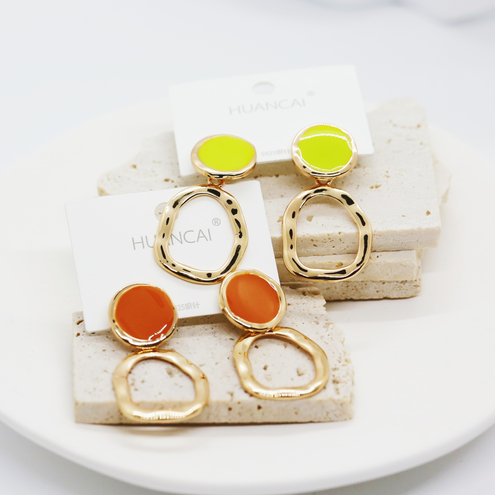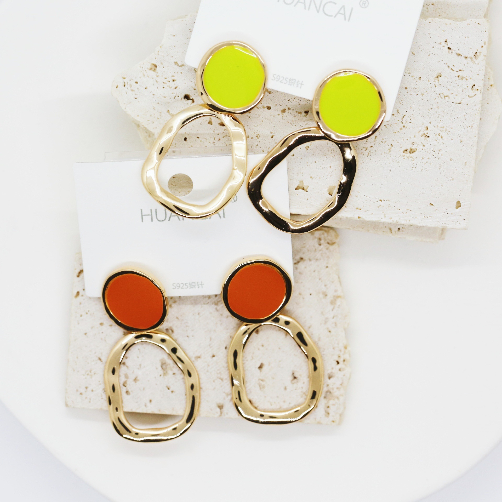 | nameOriginal | Cross-border European and American alloy round drop oil gold-plated earrings women's high-end ring-shaped biological light luxury style |