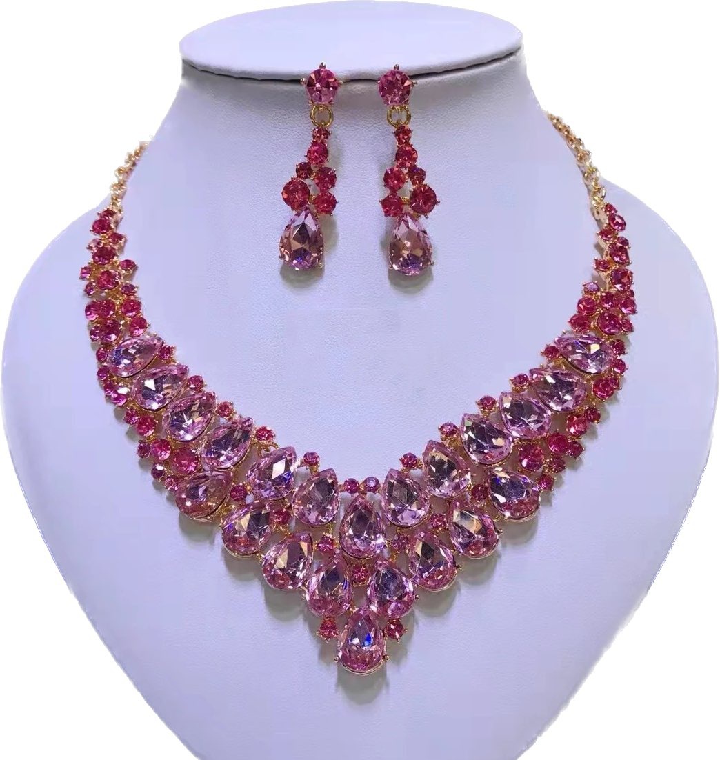 | nameOriginal | Cross-border European and American exaggerated necklace earrings wedding suit crystal gem full diamond chain female two pieces suit fashion accessories |
