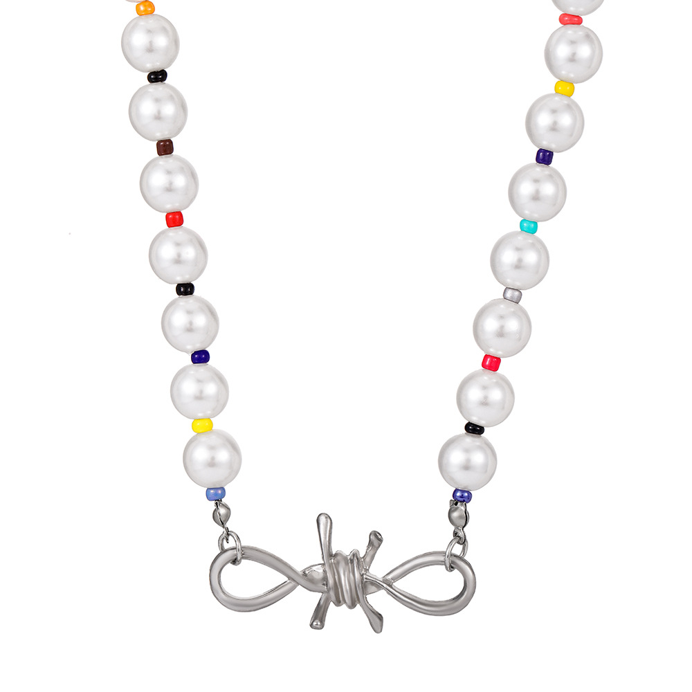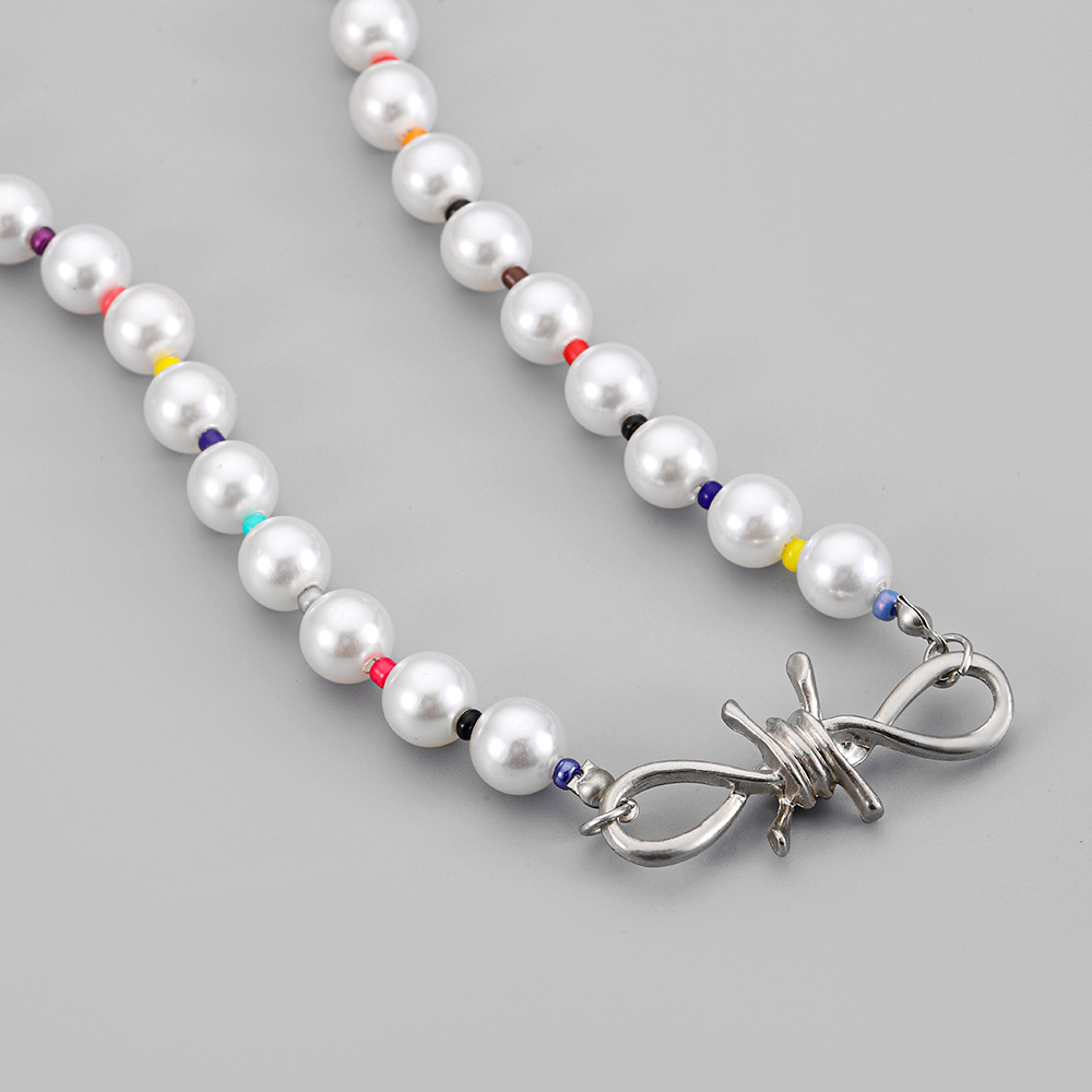 | nameOriginal | Cross-border European and American hip hop personalized men's beaded high-grade Thorn colorful rice beads pearl necklace |