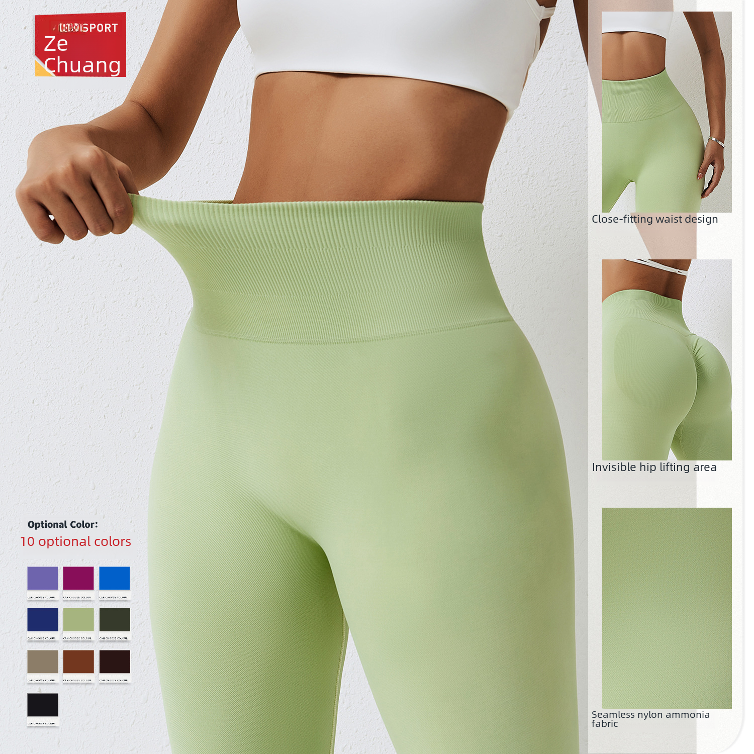 Cross-border European and American Seamless European and American Yoga Pants Women's Tight High Waist Belly Tight Running Pants Peach Hip Fitness Pants