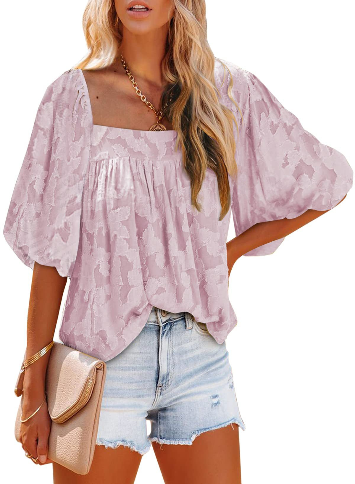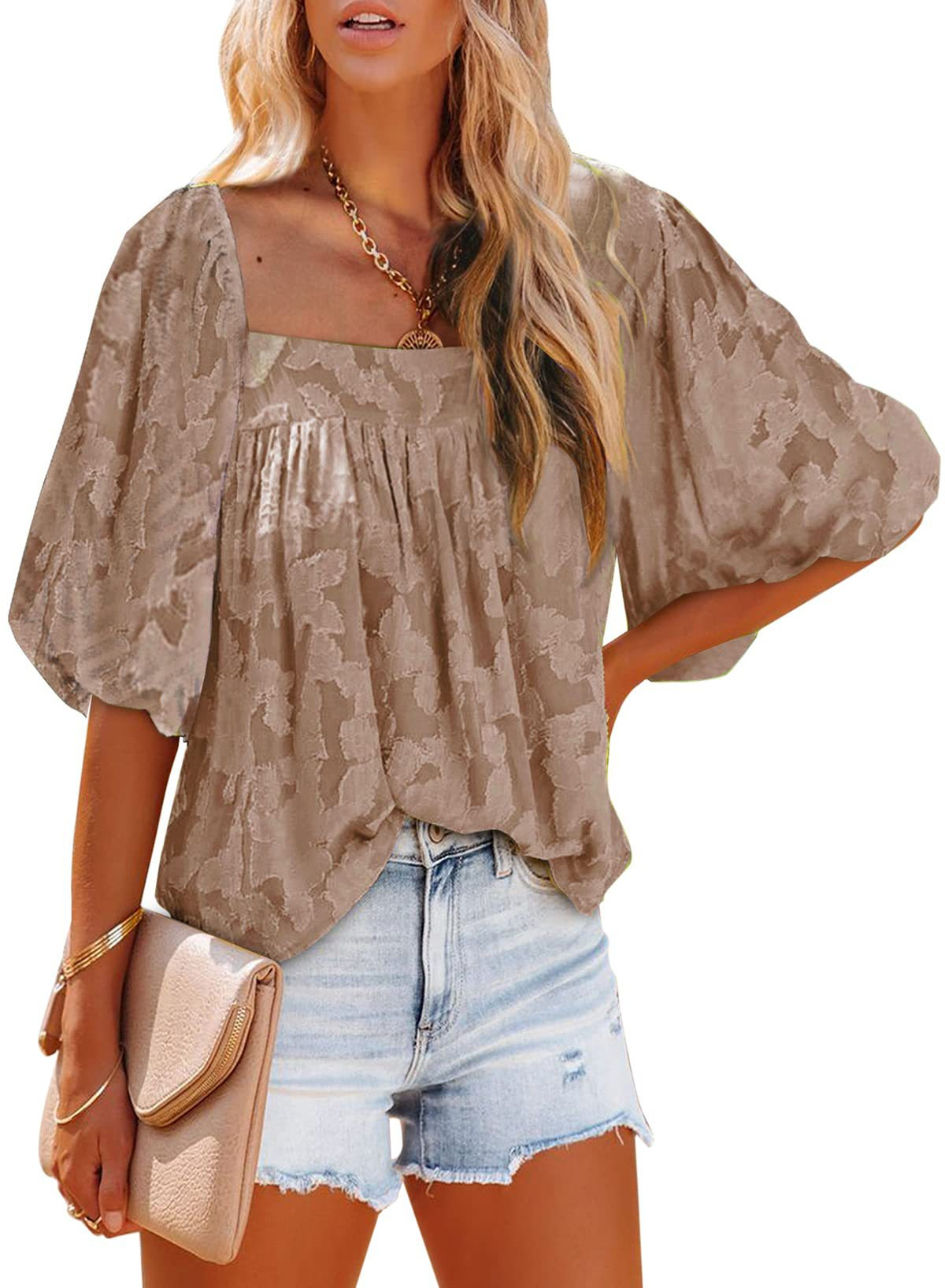 | nameOriginal | Cross-border European and American Women's 2022 Summer New Amazon Square Collar Chiffon Top Floral Texture Lantern Sleeve Shirt |