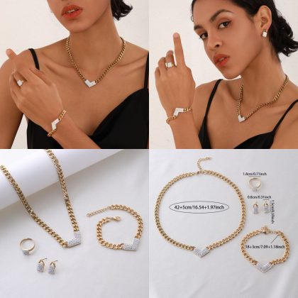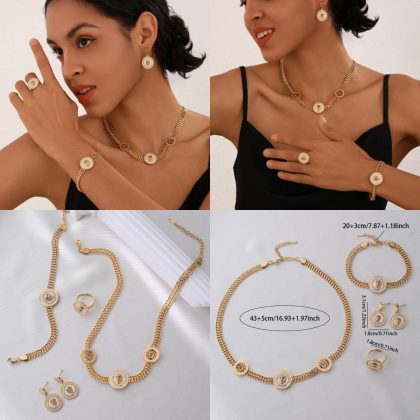 | nameOriginal | Cross-border Explosions High-grade Titanium Steel Jewelry Four-piece Set Niche Fashion 18K Gold Light Luxury Jewelry Set |