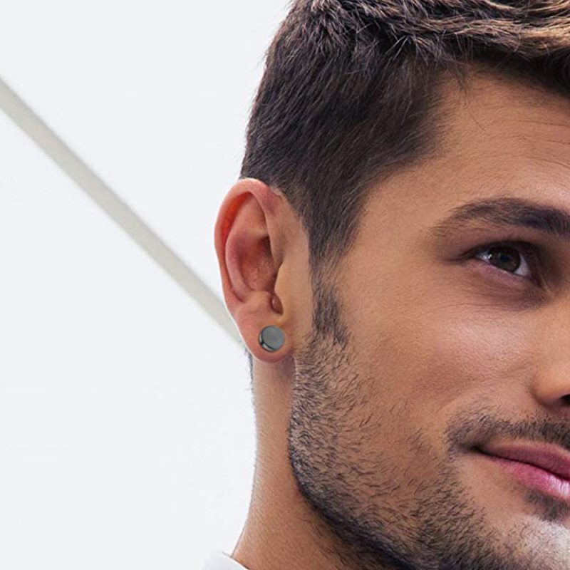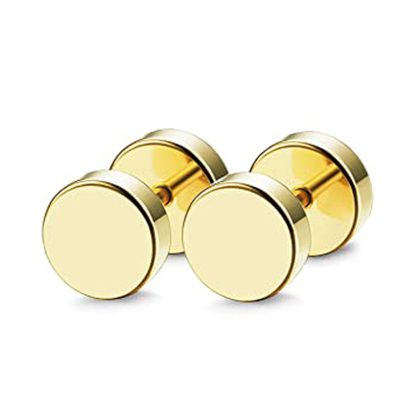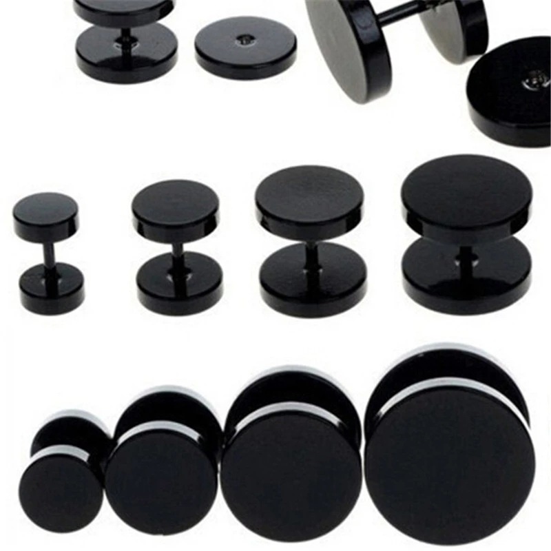 nameOriginal | Cross-border explosives titanium steel black barbell earrings hip-hop rock round hipster dumbbell screws non-allergic earrings |