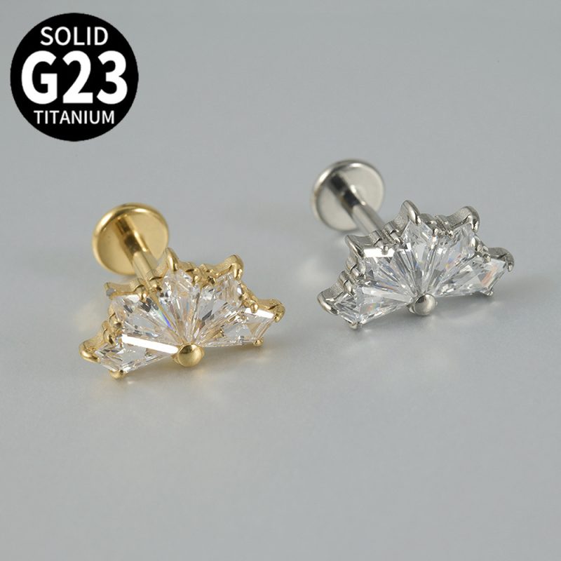 | nameOriginal | Cross-border F136 titanium internal thread inlaid zircon fan-shaped lip nail G23 titanium new fashion ear studs personalized piercing jewelry |
