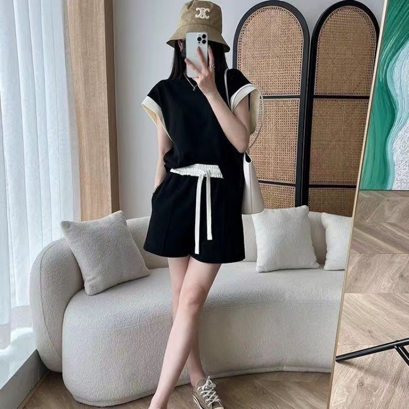 | nameOriginal | Cross-border Fashion Hong Kong Style Casual suit Women's Summer 2024 New Slimming Age-reducing Short-sleeved Shorts Sports Two-piece Set |