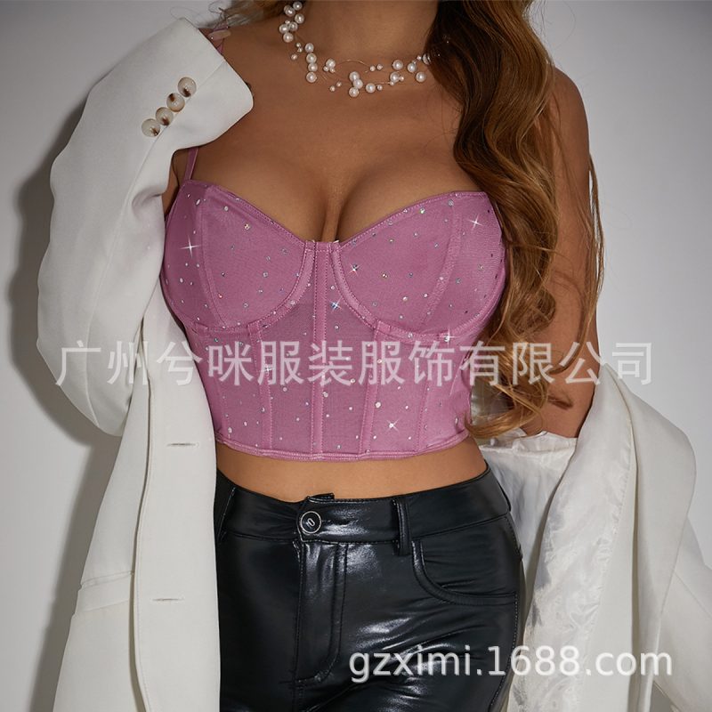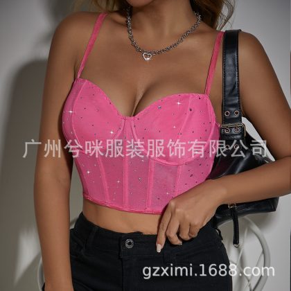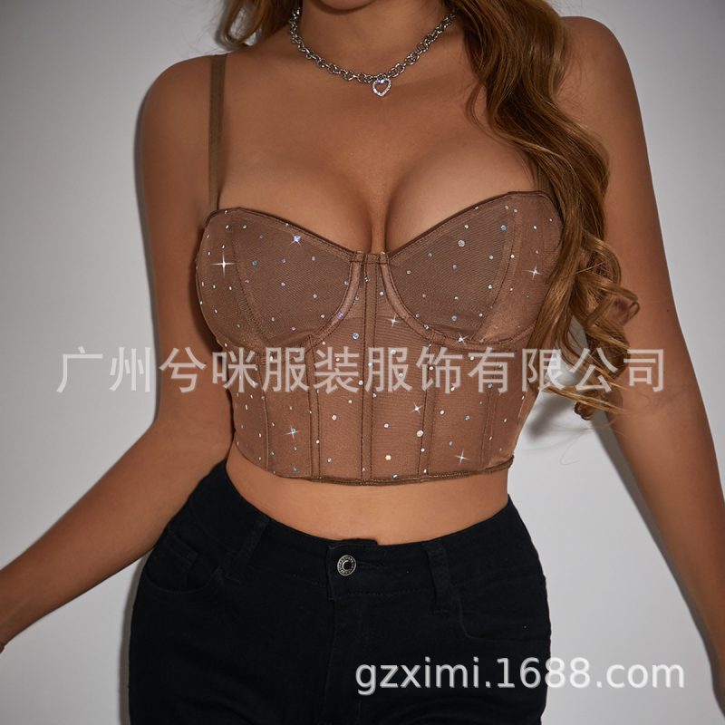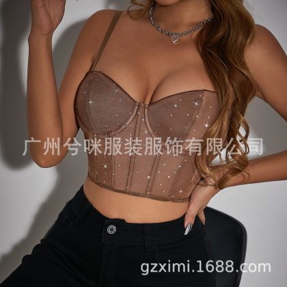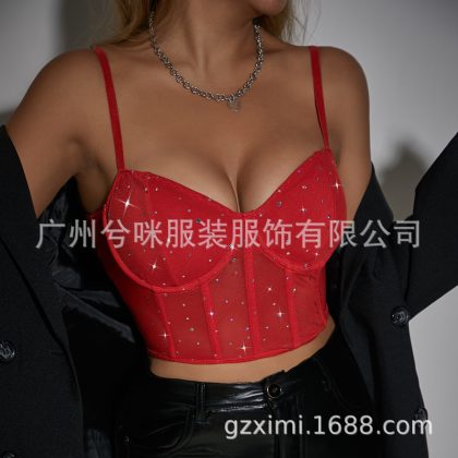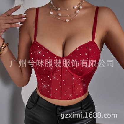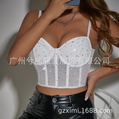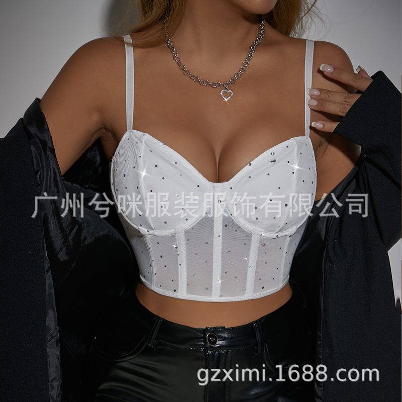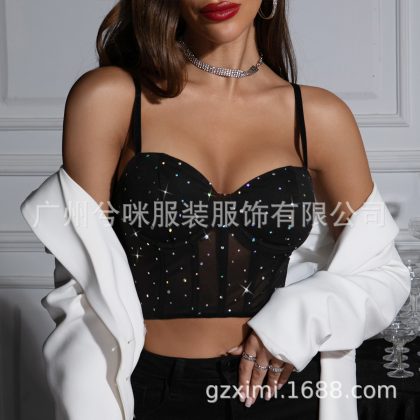 nameOriginal | Cross-Border fashion sexy nightclub style sequined Fishbone steel ring perspective navel slim fit hot girl vest A1262 |
