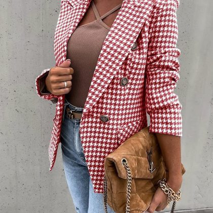 | nameOriginal | Cross-border foreign trade 2023 spring new AliExpress Amazon houndstooth printed casual coat slim suit |