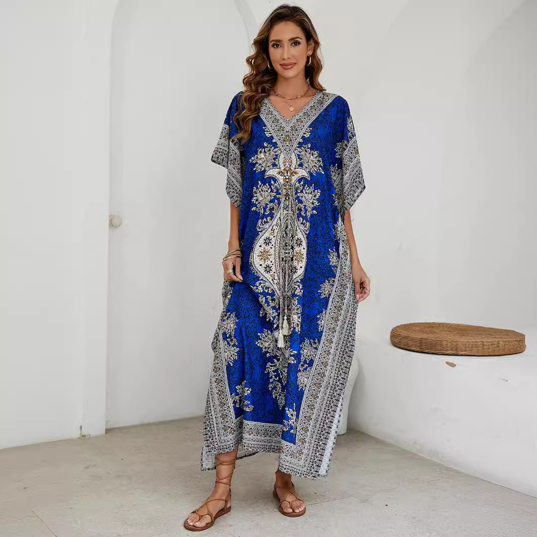 | nameOriginal | Cross-border Foreign Trade 2023 Summer Vacation Bohemia Beach Dress Exotic Loose Anti-sunscreen Dress Blouse |