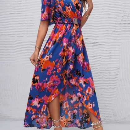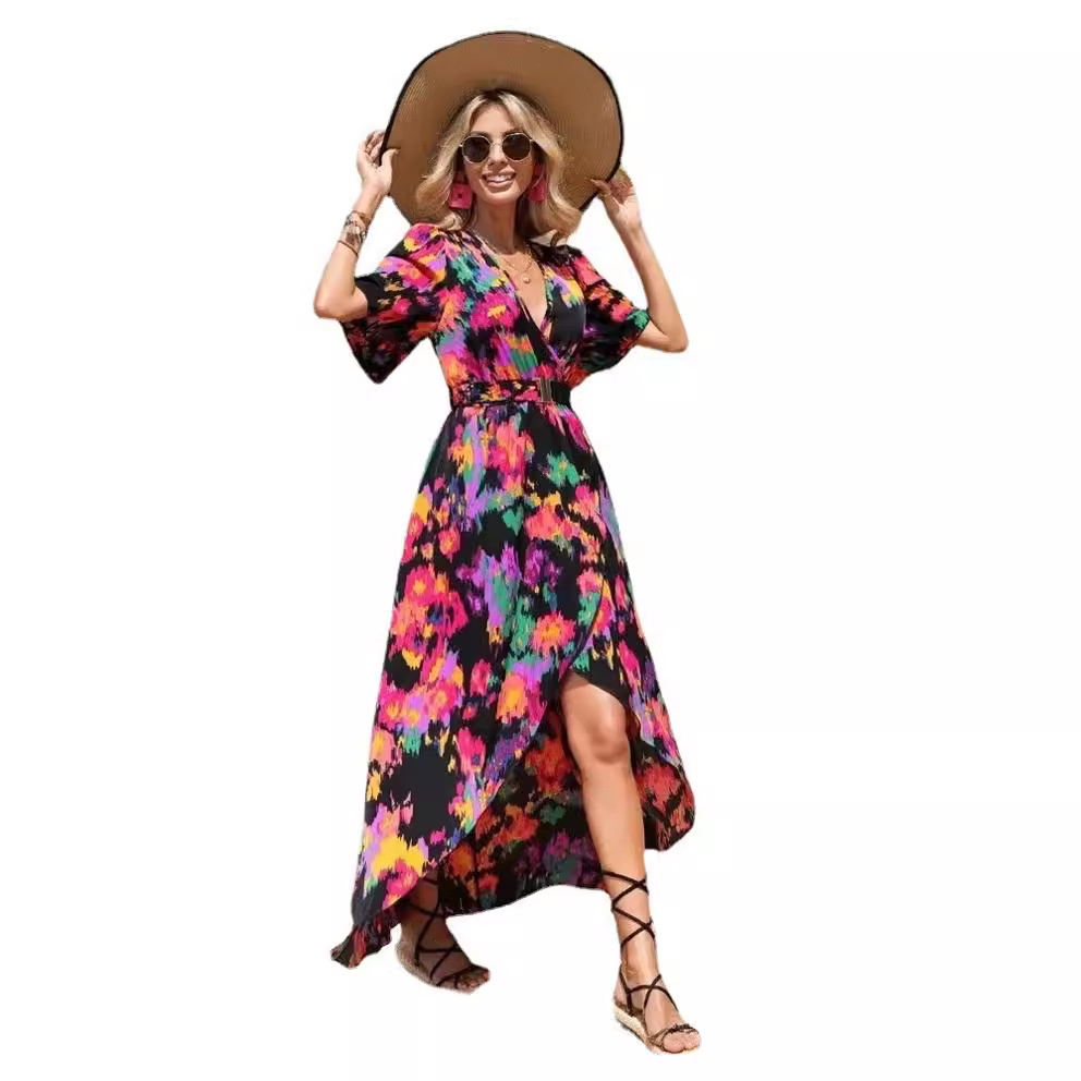 | nameOriginal | Cross-border foreign trade 2024 Amazon summer bohemian holiday style V-neck strap waist-tight beach dress women |