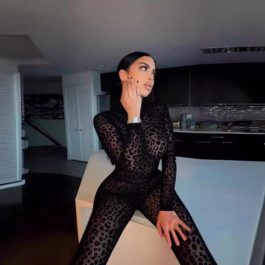 | nameOriginal | Cross-border foreign trade 2024 new women's European and American style slim long sleeve sexy flocking perspective slim jumpsuit women |