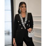 التجارة الخارجية عبر الحدود 2024 الربيع والخريف الصناعة الثقيلة اليدوية حجر الراين مزدوجة الصدر سترة بدلة فاخرة خفيفة